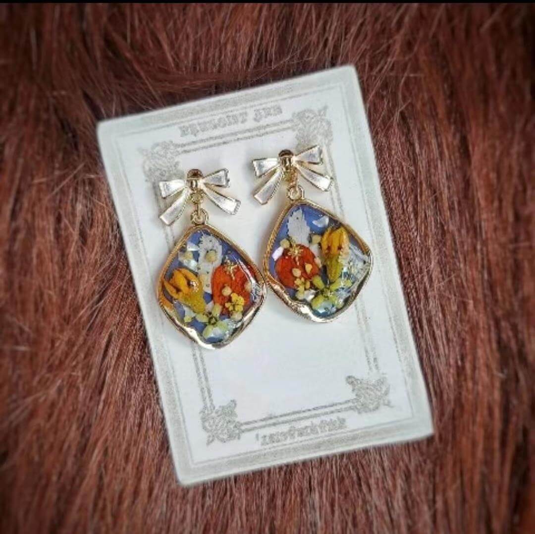 These real flower handmade earrings are designed to reflect beauty and elegance. Carefully crafted with real flowers, they add a unique decorative touch to any look. Enjoy the subtle sophistication of these delicate earrings, perfect for special occasions or everyday luxury.